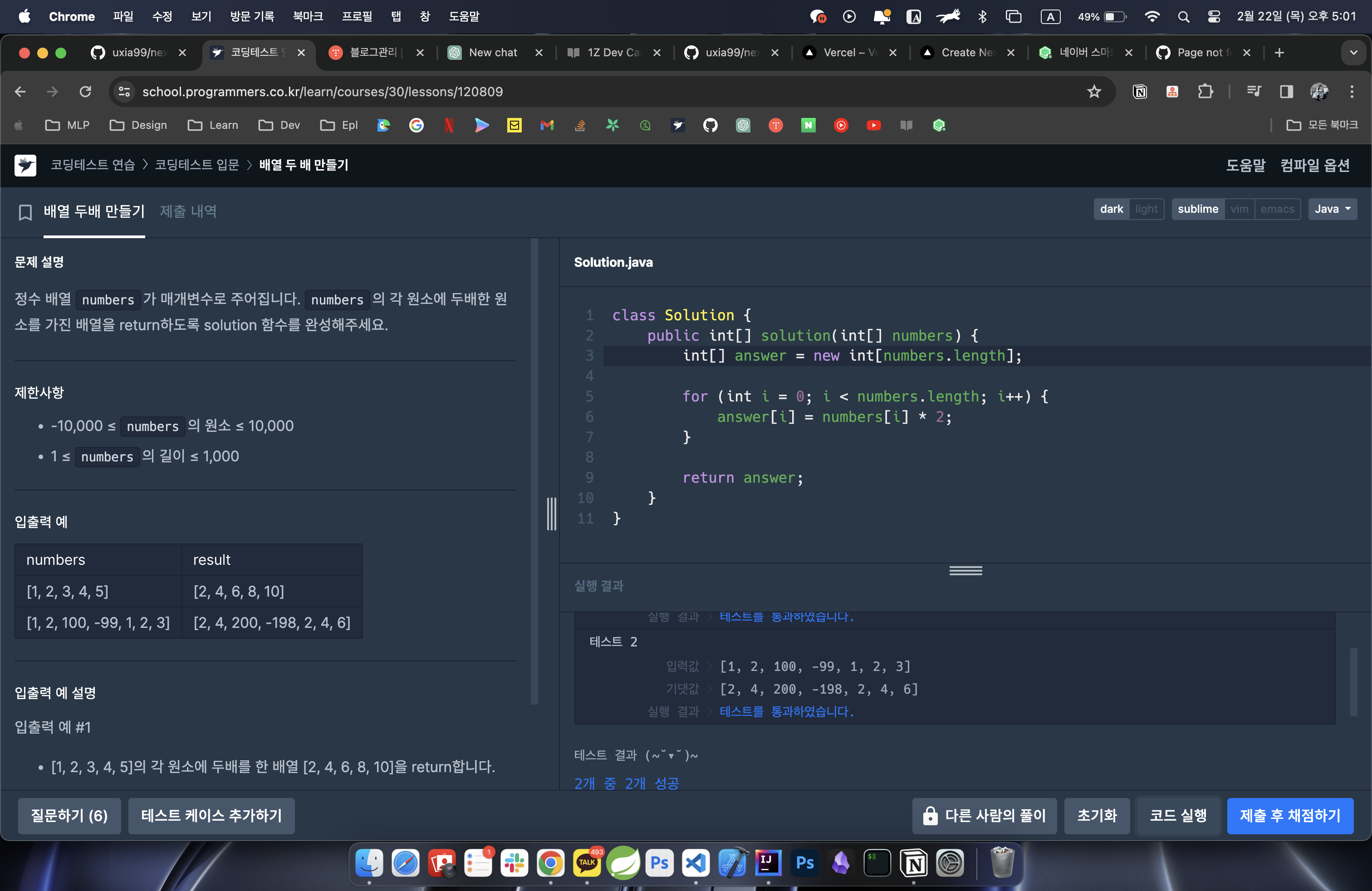 프로그래머스 Lv.0 '배열 두 배 만들기' 자바