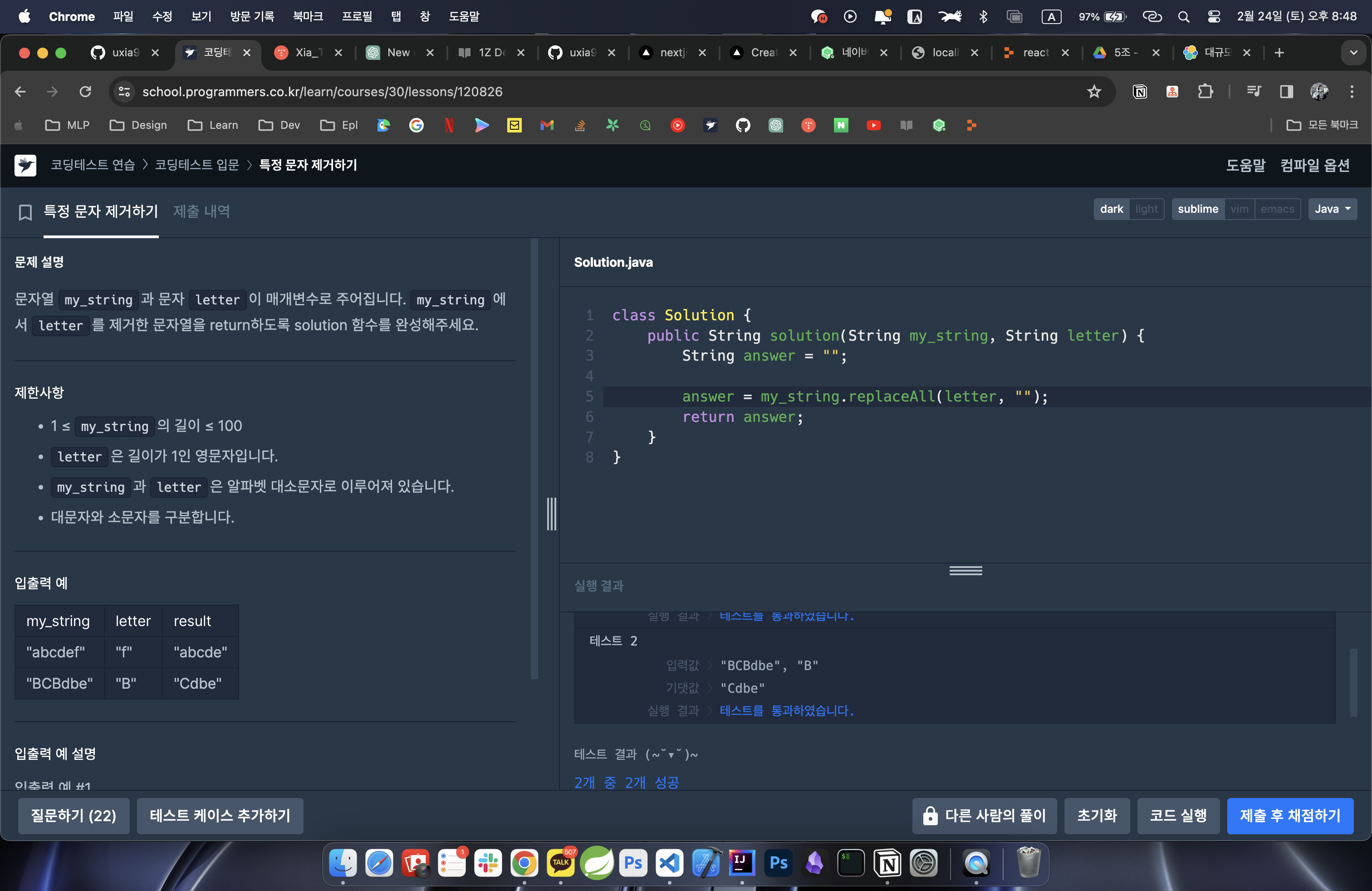 Q. 문자열 my_string과 문자 letter이 매개변수로 주어진다.