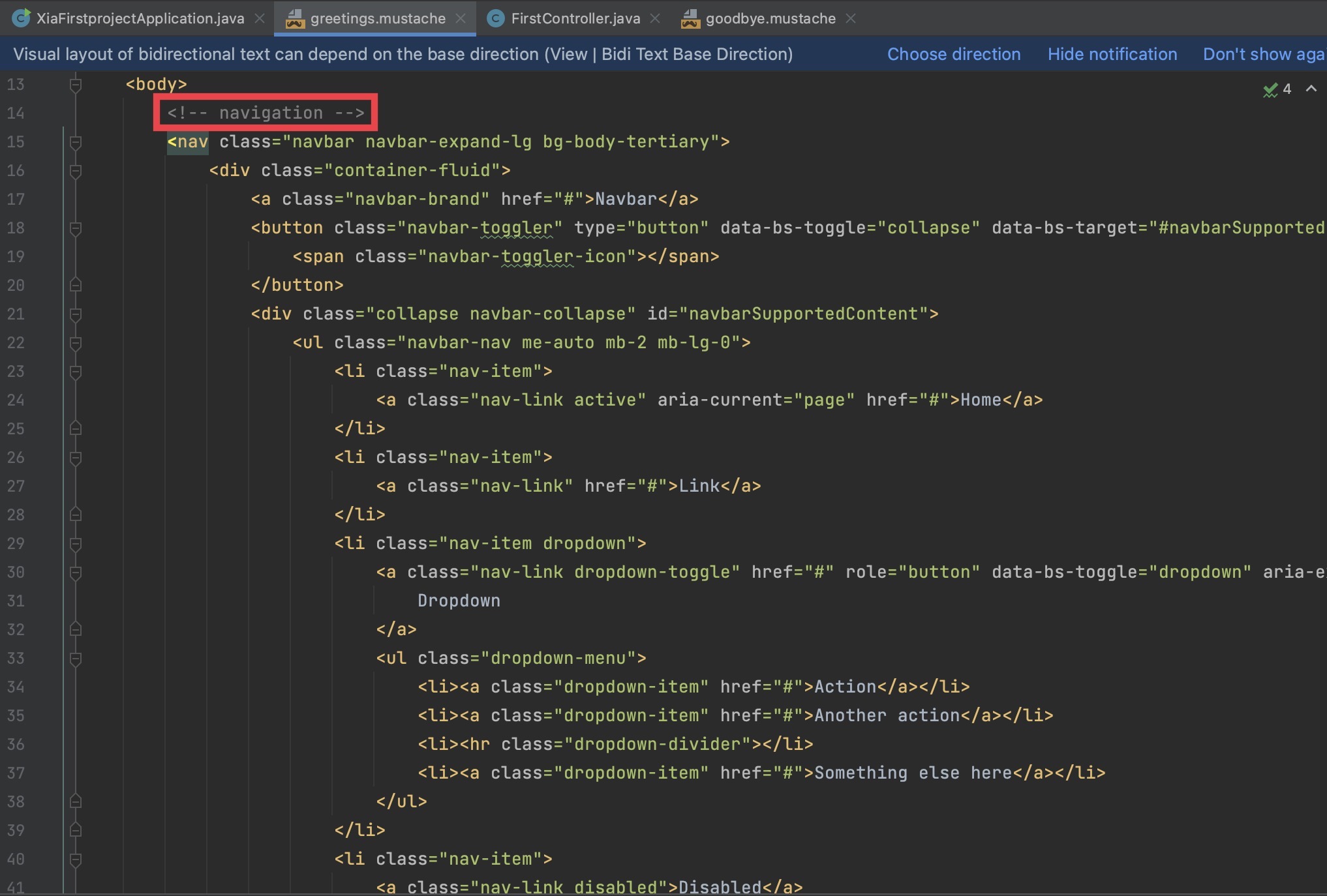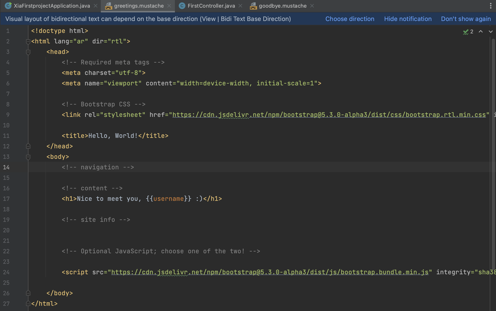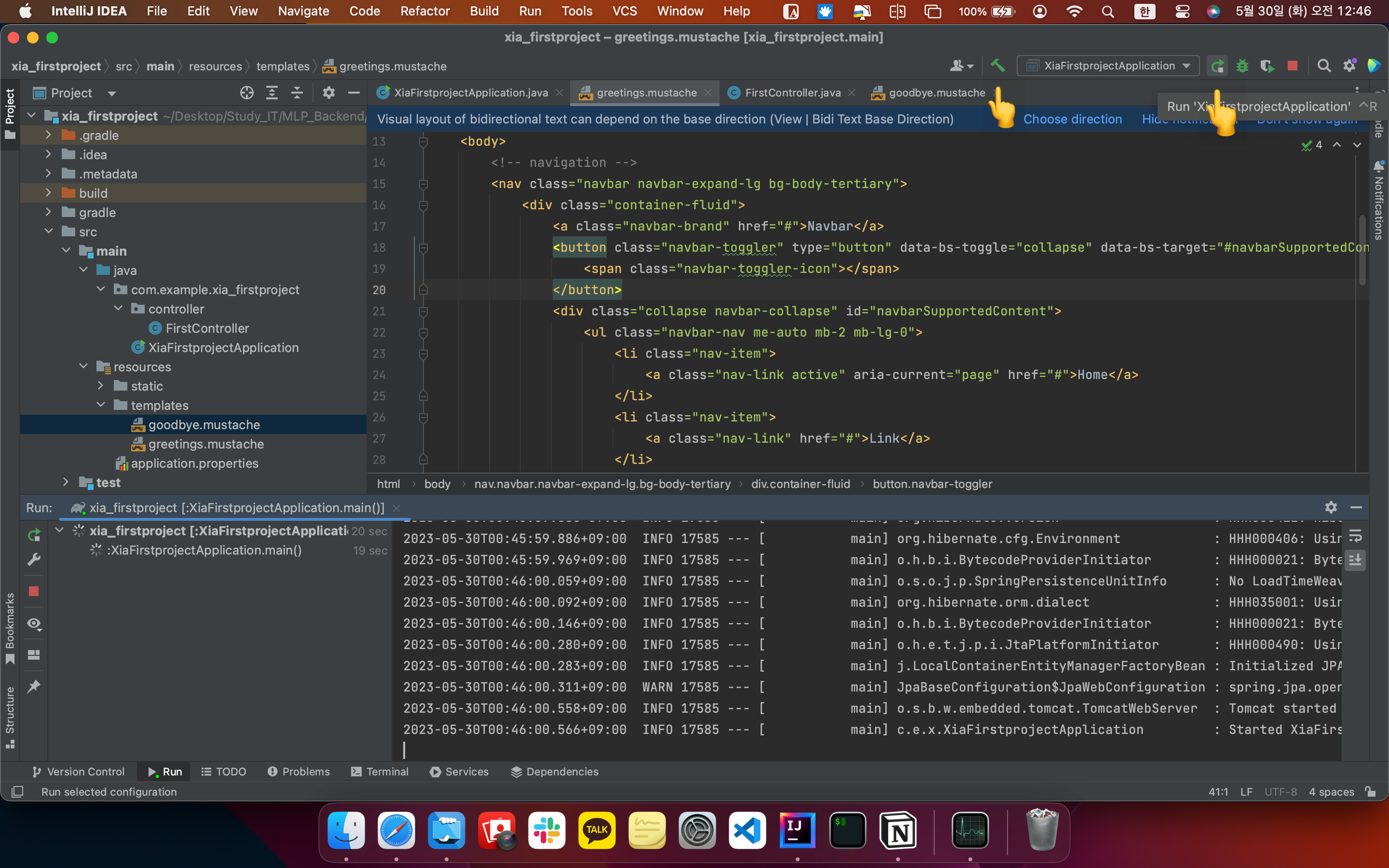 위 코드를 복사해서 greeting.mustache에 있던 기본 코드를 지우고 붙여넣은 다음