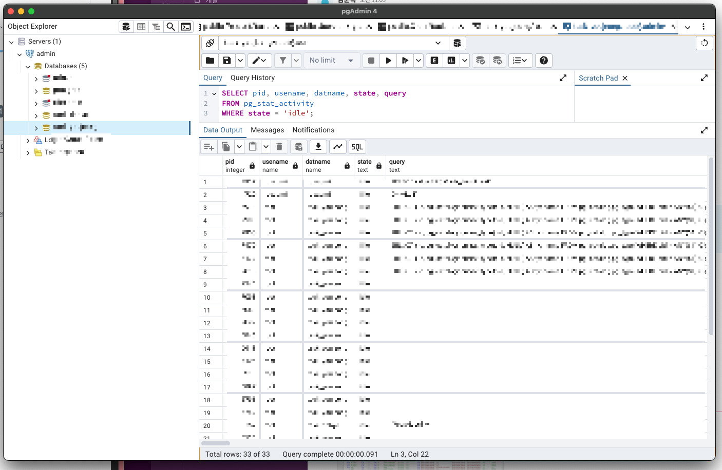 WHERE state = 'idle' and datname = '내 DB 이름';'Back > SQL(DB)' 카테고리의 다른 글