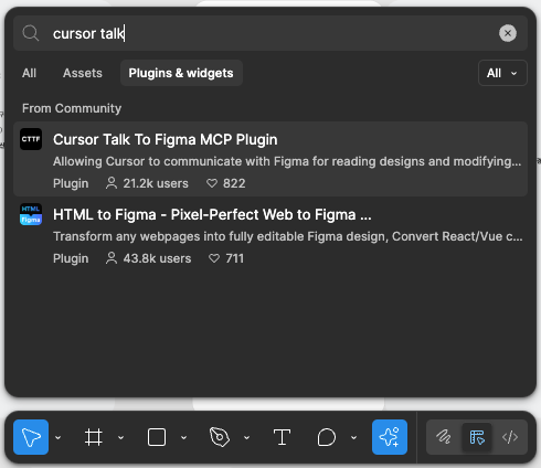 연결을 원하는 Figma 시트에서 플러그인 검색을 한다.