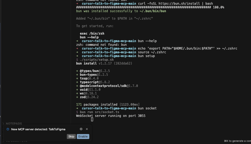 → 새로운 MCP 서버 감지 팝업 enable 클릭