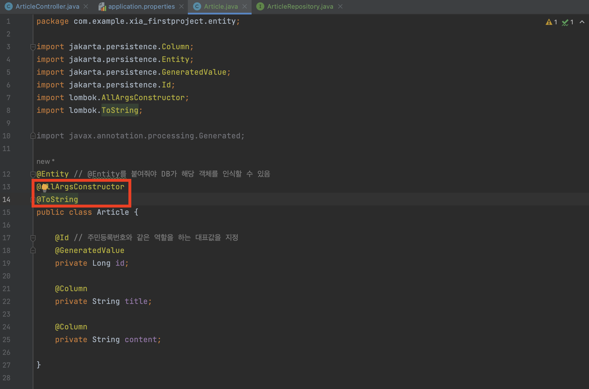 롬복으로 간추린 코드가 잘 작동하는지 확인하기 위해서