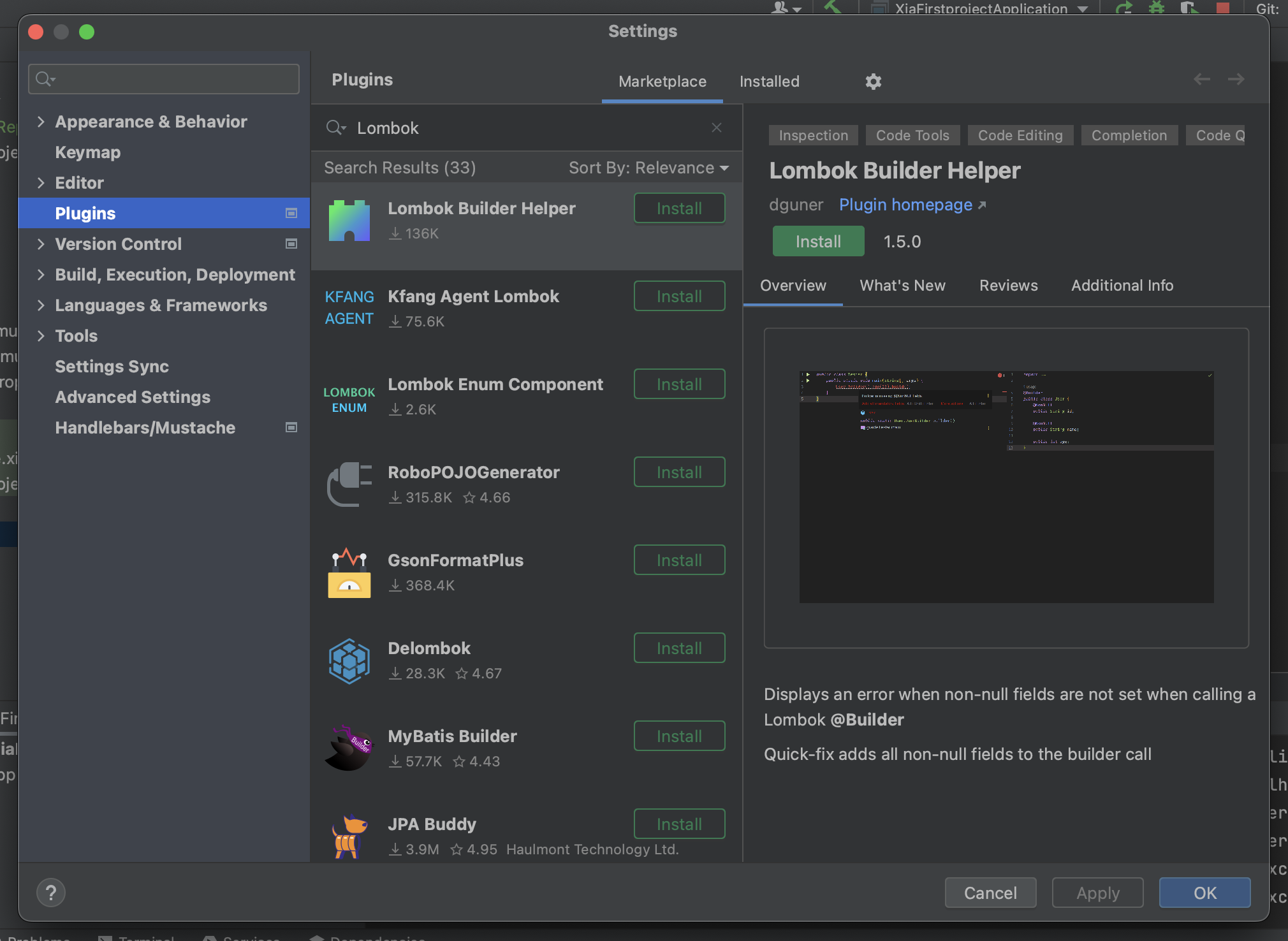 이제 롬복 플러그인 설치를 해줘야하는데,