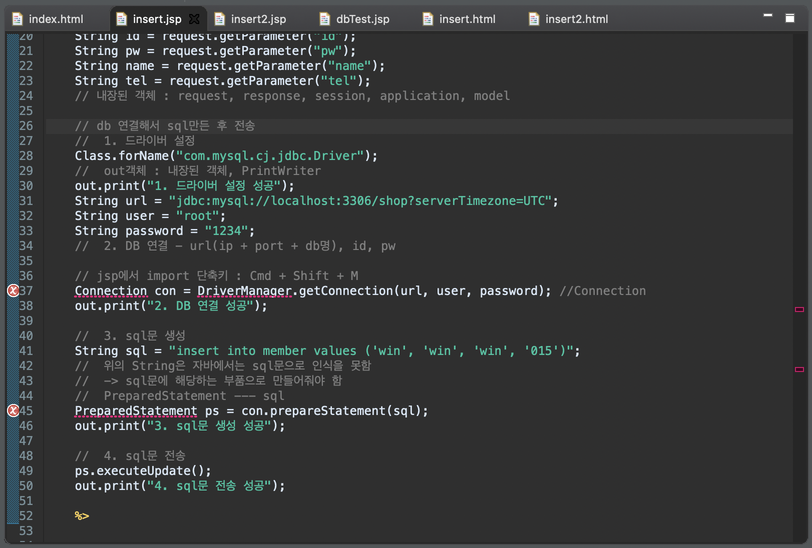 // jsp에서 import 단축키 : Cmd + Shift + M