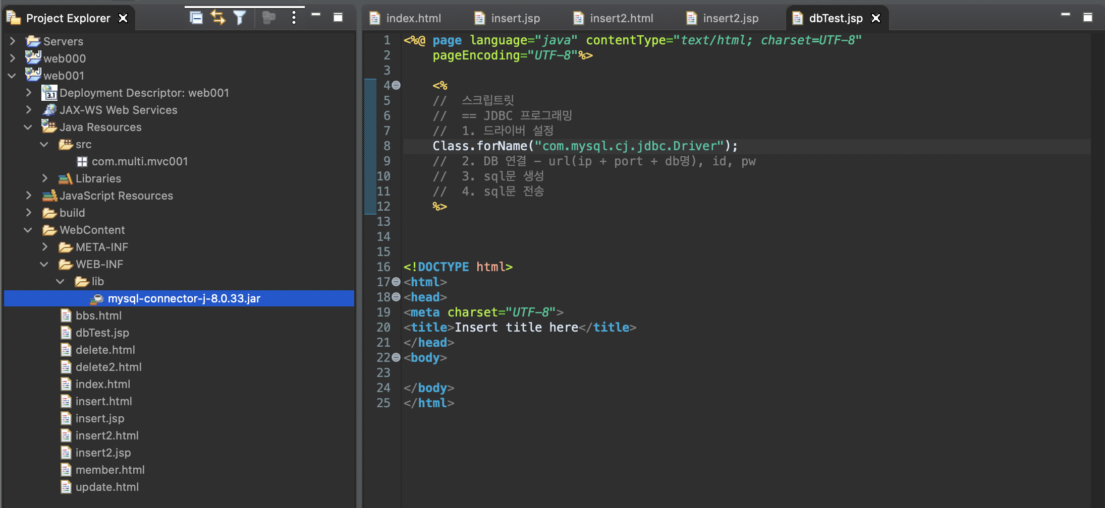 dbTest라는 이름의 jsp 파일을 추가해준다.