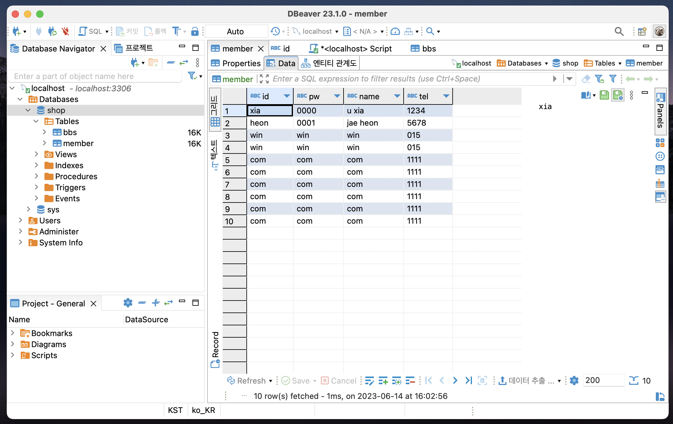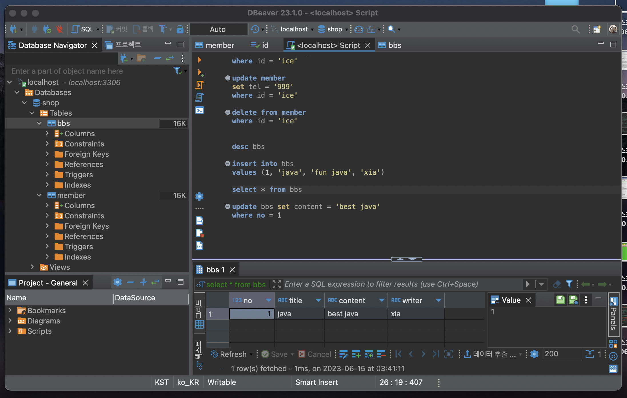 Ctrl + Enter를 다시 눌러주면 DB에 데이터가 입력된 걸 확인할 수 있다.