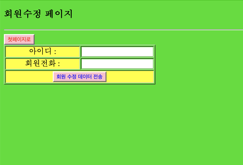 회원의 아이디와 전화번호를 수정하도록 되어있는데,
