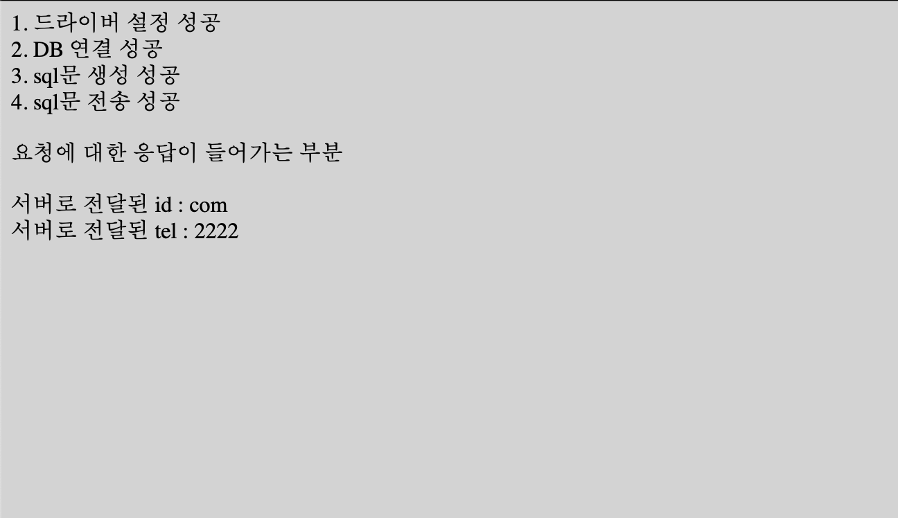 따라서 tel이 1번 물음표, id가 2번 물음표가 된다.