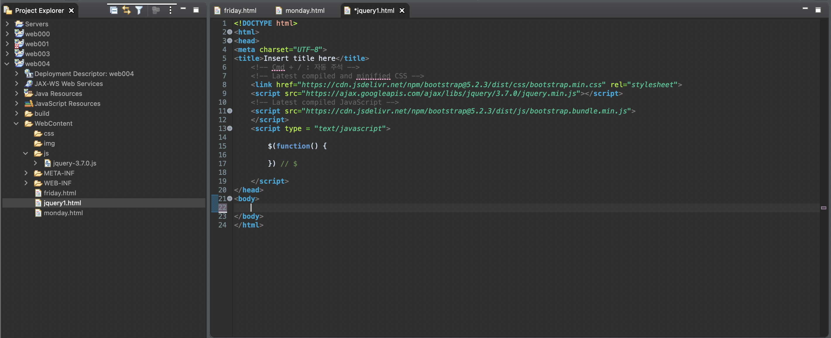 새로 monday이름의 파일을 복사해준 뒤