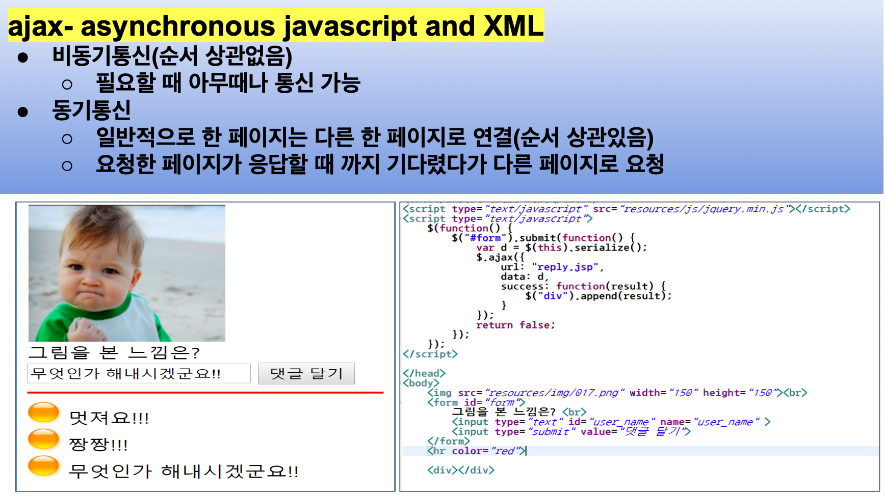 메인이 되는 ajax.html 파일에는 다음과 같이