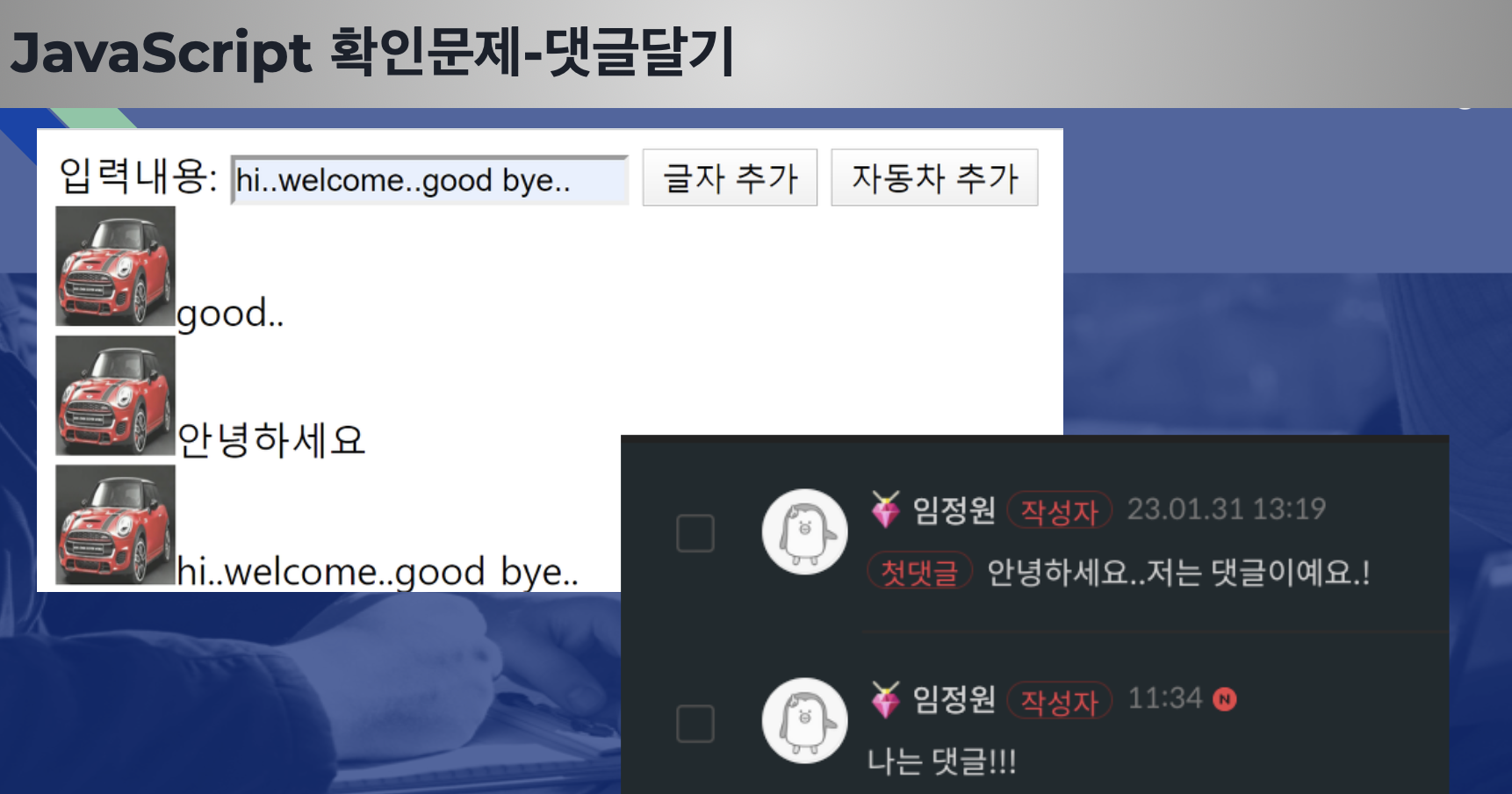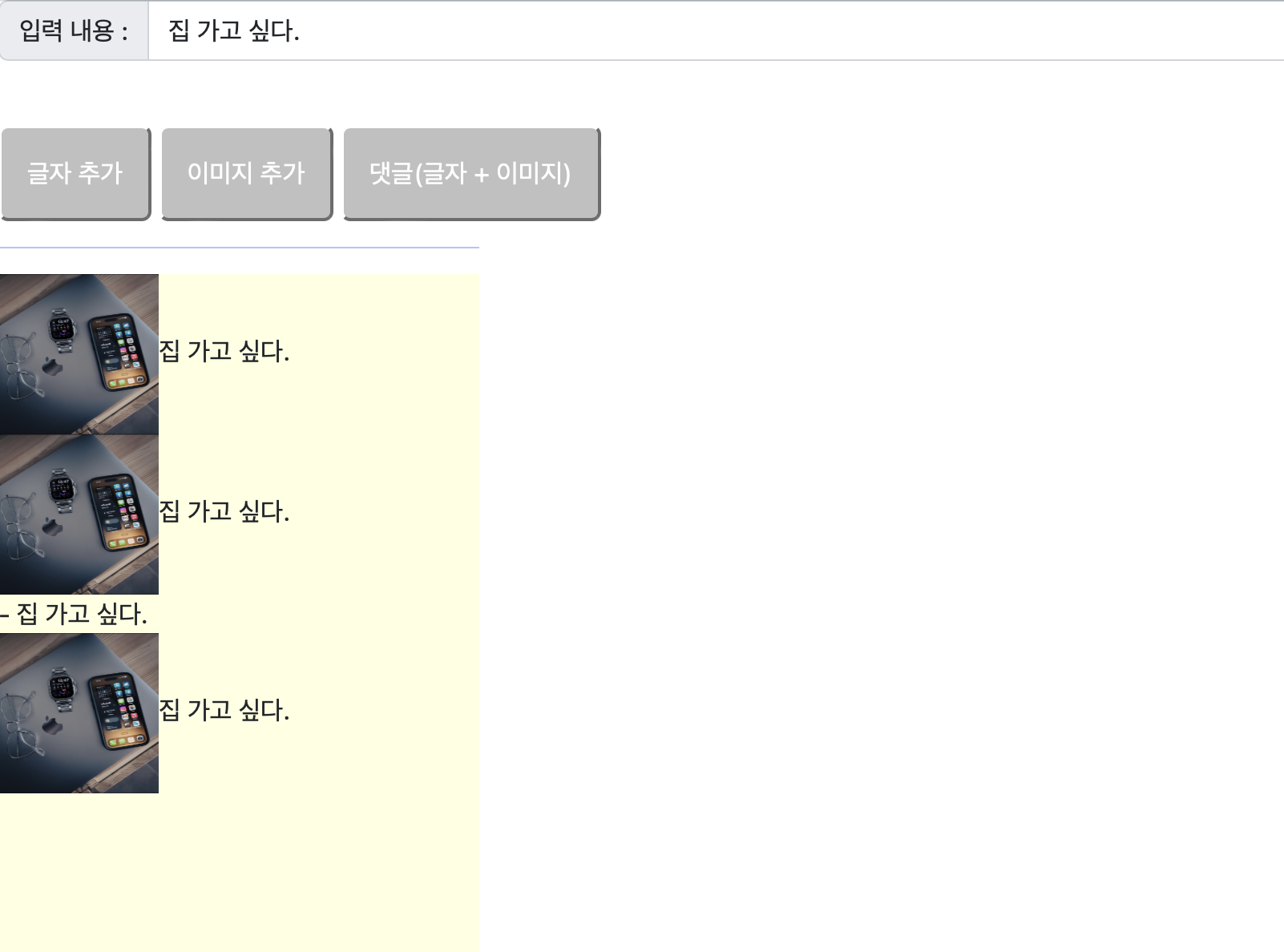 <button class = "mt-4 p-3 bg primary text-white rounded" id = "b3">댓글(글자 + 이미지)</button>