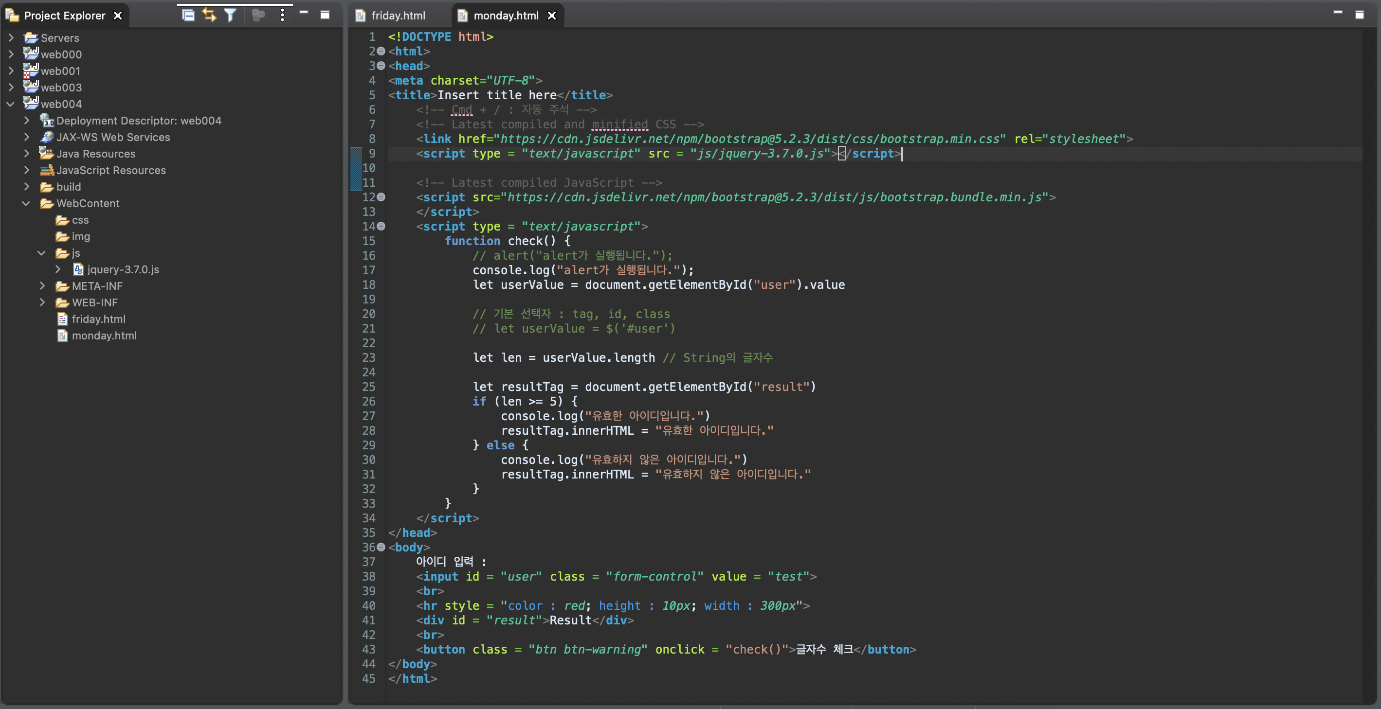 <button class = "btn btn-warning" onclick = "check()">글자수 체크</button>
