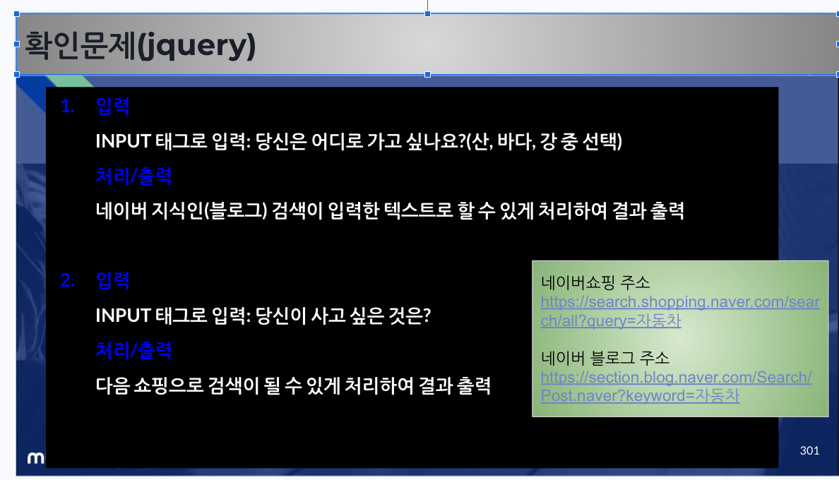 - JavaScript 리뷰 + JQuery + AJAX 아키텍쳐 기본