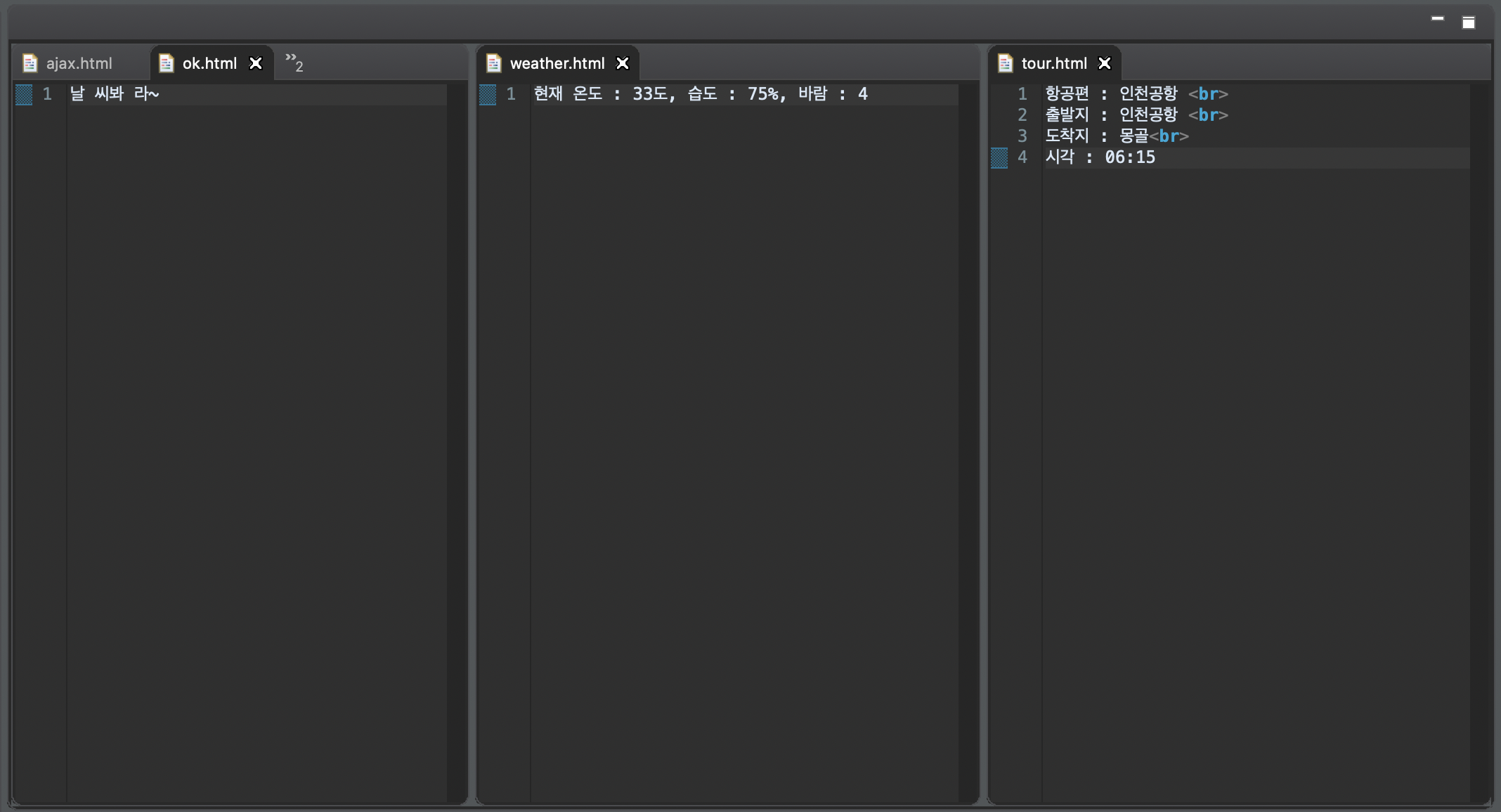 ok, weather, tour 이름의 세 html 파일을 만들어