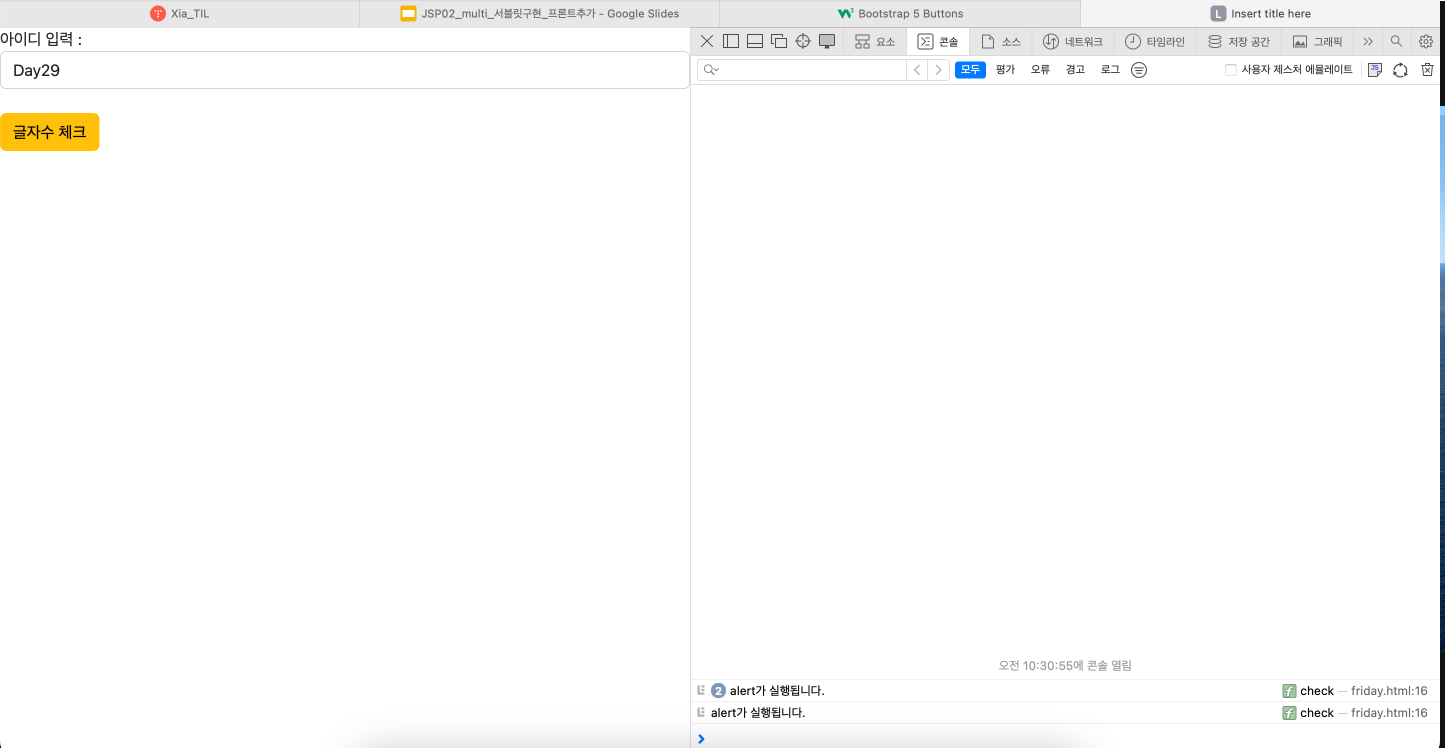 alertr가 귀찮으면 console.log로 변경해서 확인할 수 있도록 할 수 있다.