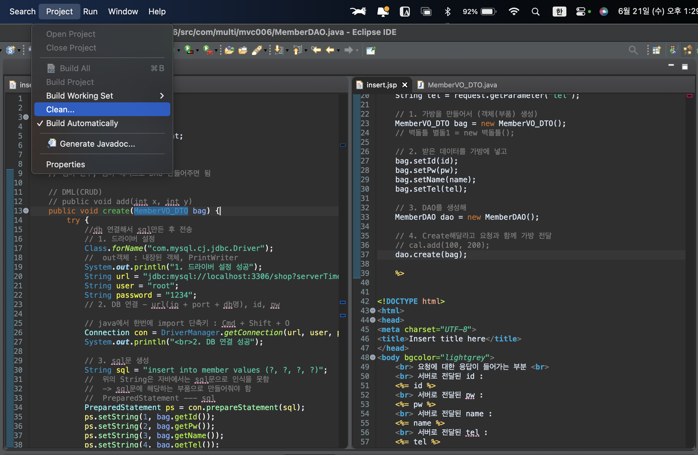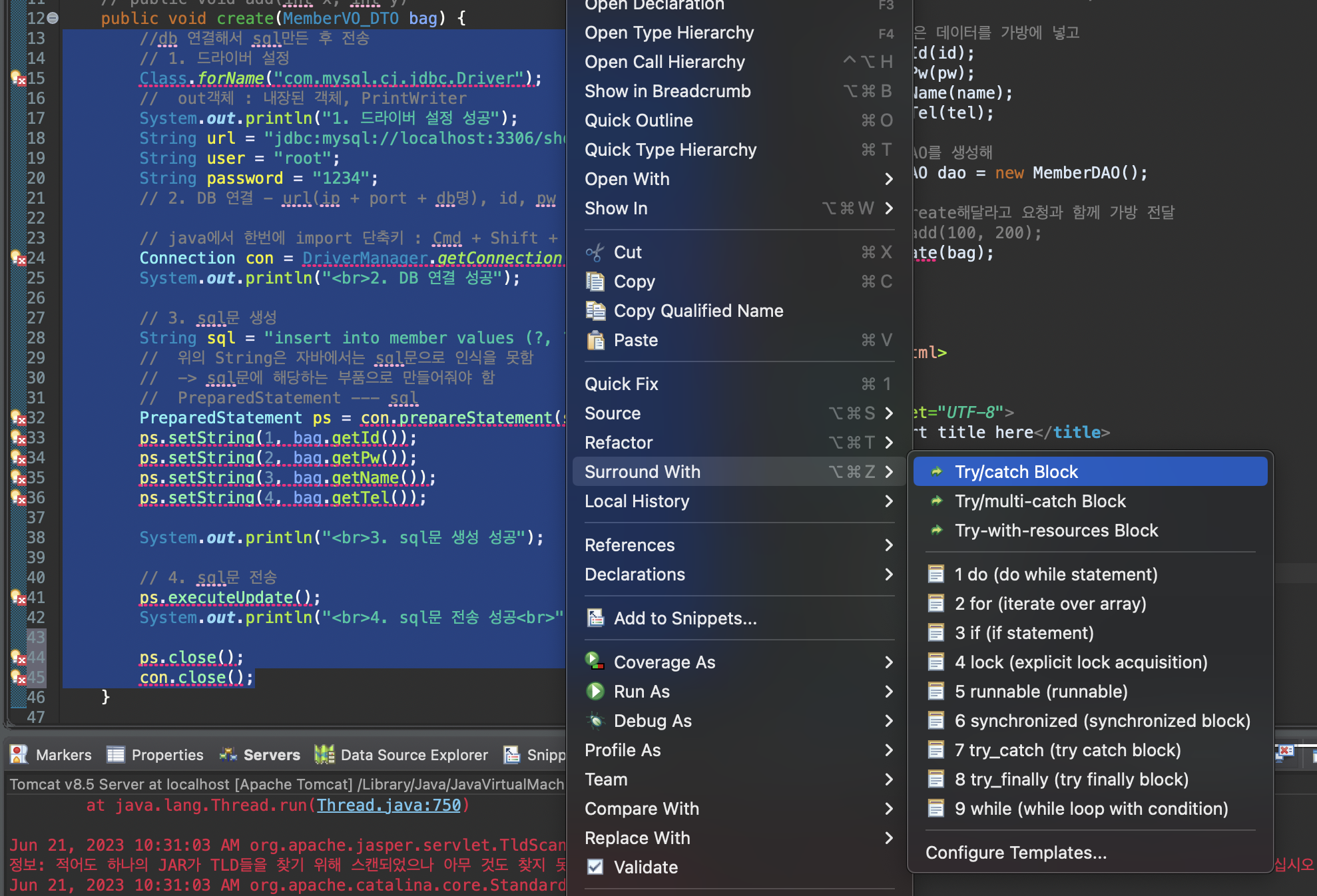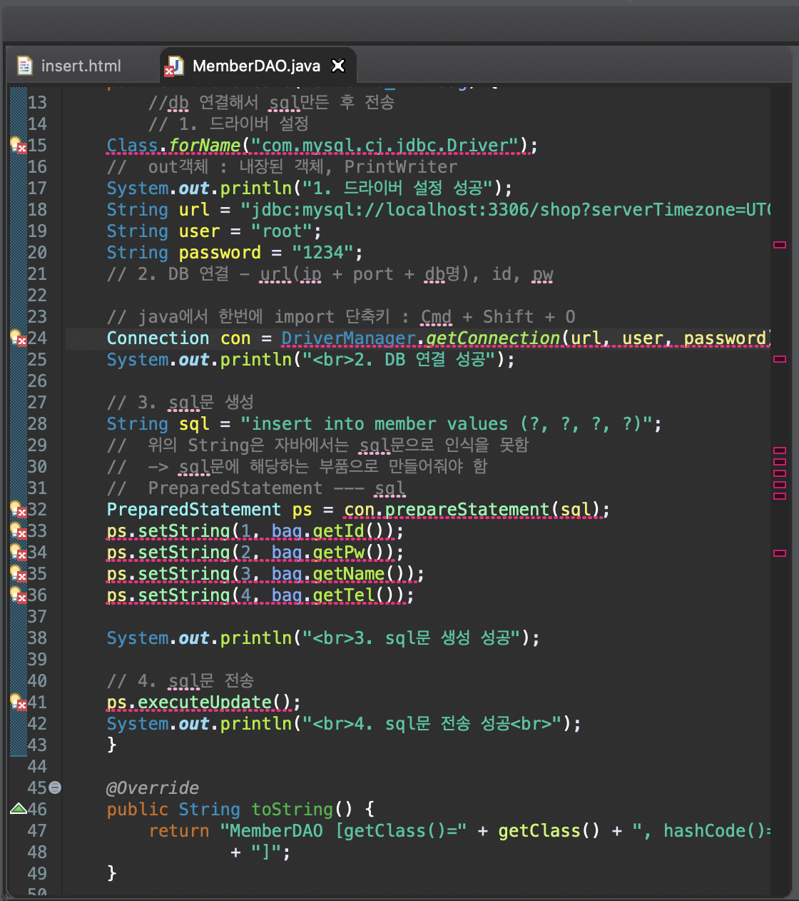 // jsp에서 import 단축키 : Cmd + Shift + M