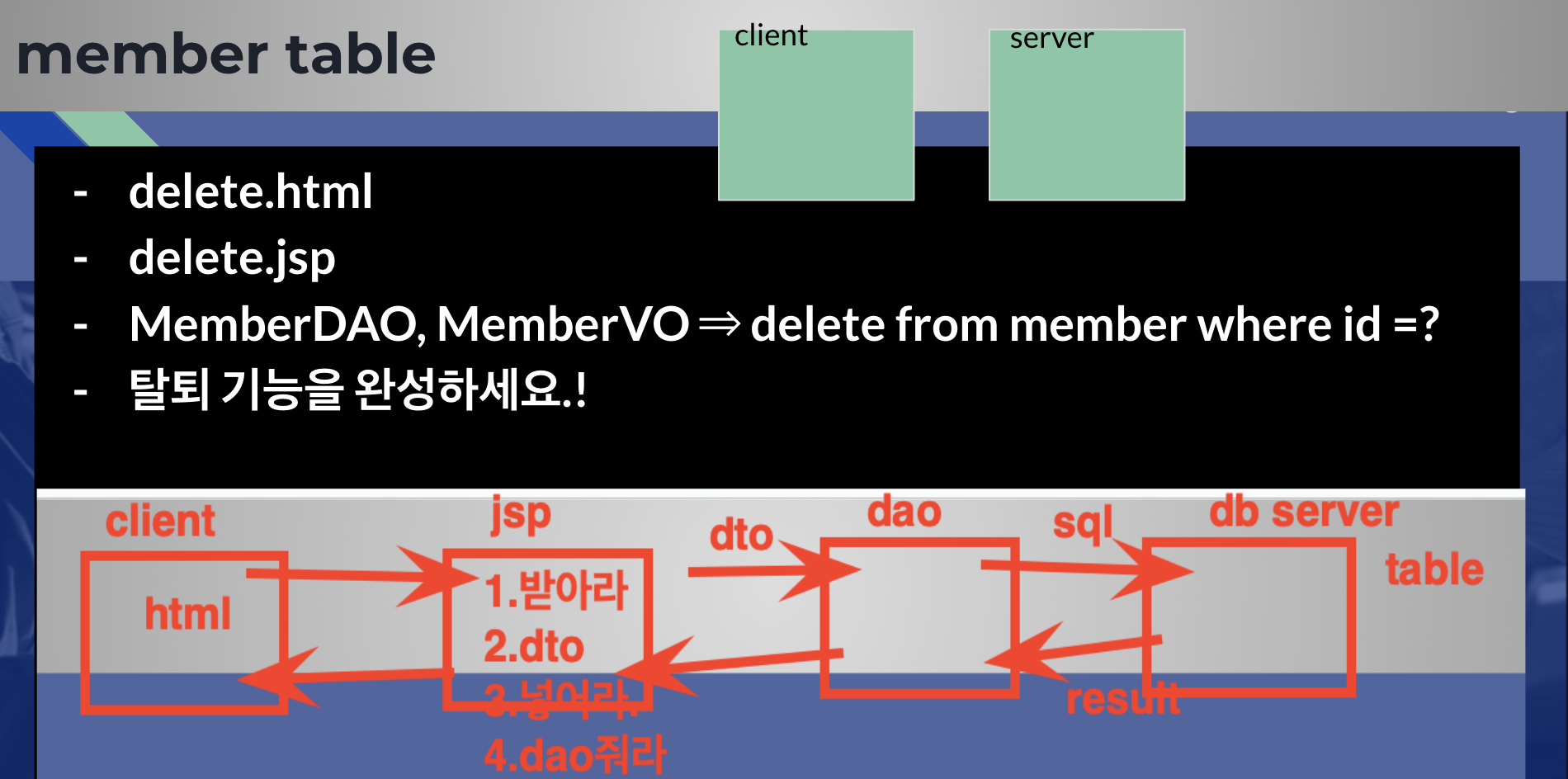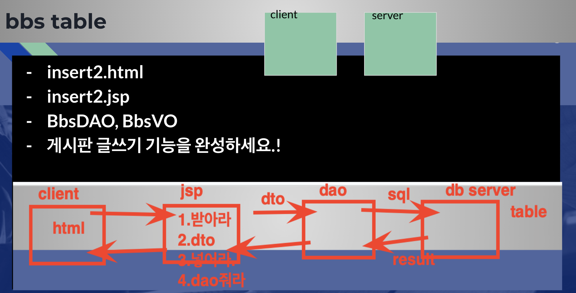 // db 연결해서 sql만든 후 전송