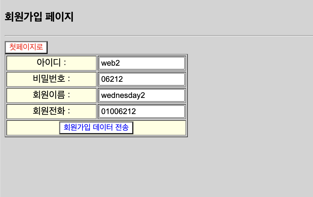 지난번에 했던 회원가입 페이지 코드를 가져와 DB에 연결한다.