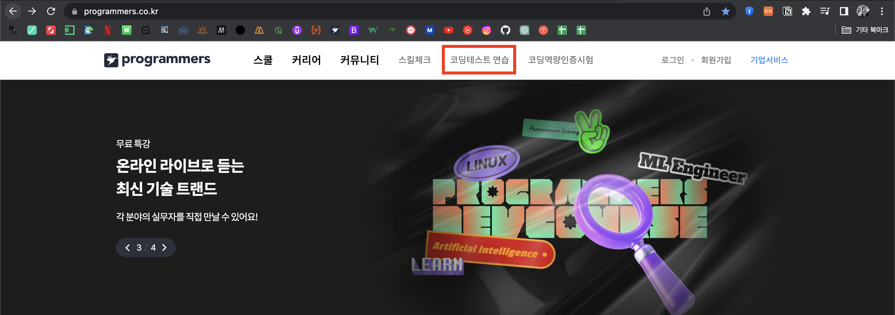 홈페이지 상단에 코딩테스트 연습이 있는데