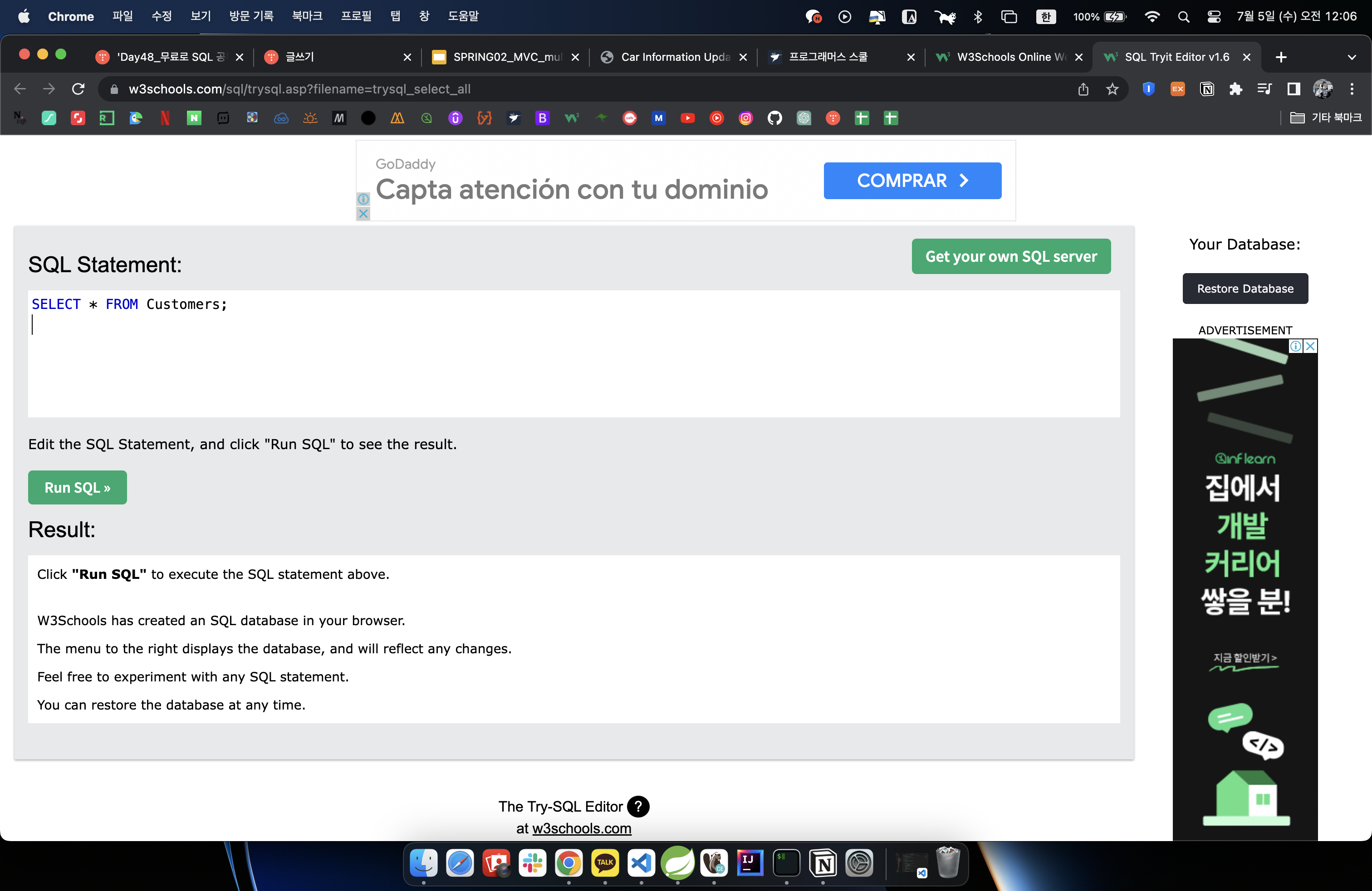 SQL에 대한 공부부터 실습도 해볼 수 있다.