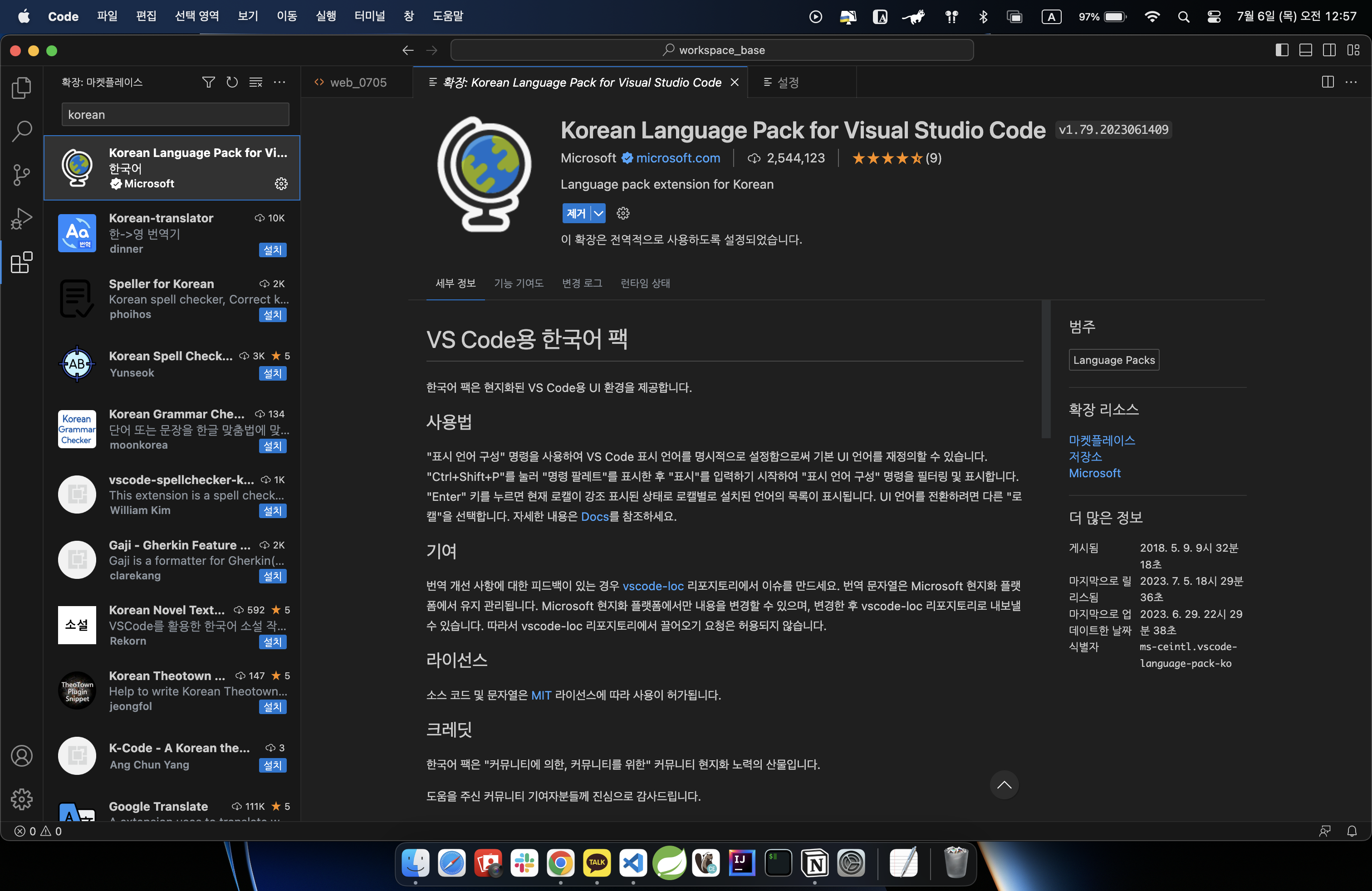 install 우측에 설정 아이콘을 눌러 확장 설정에 들어가