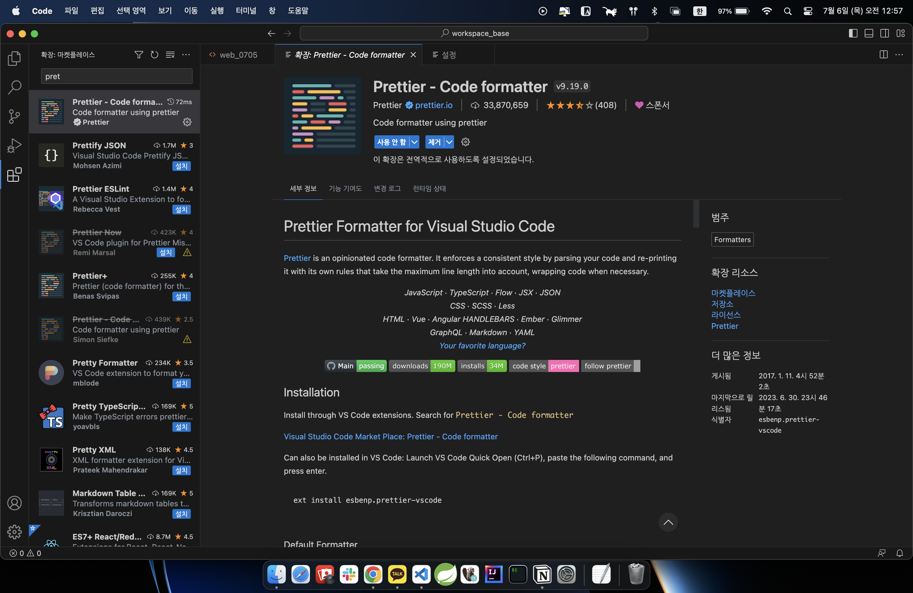 HTML, CSS, JS 등 언어 형식 잡아줌