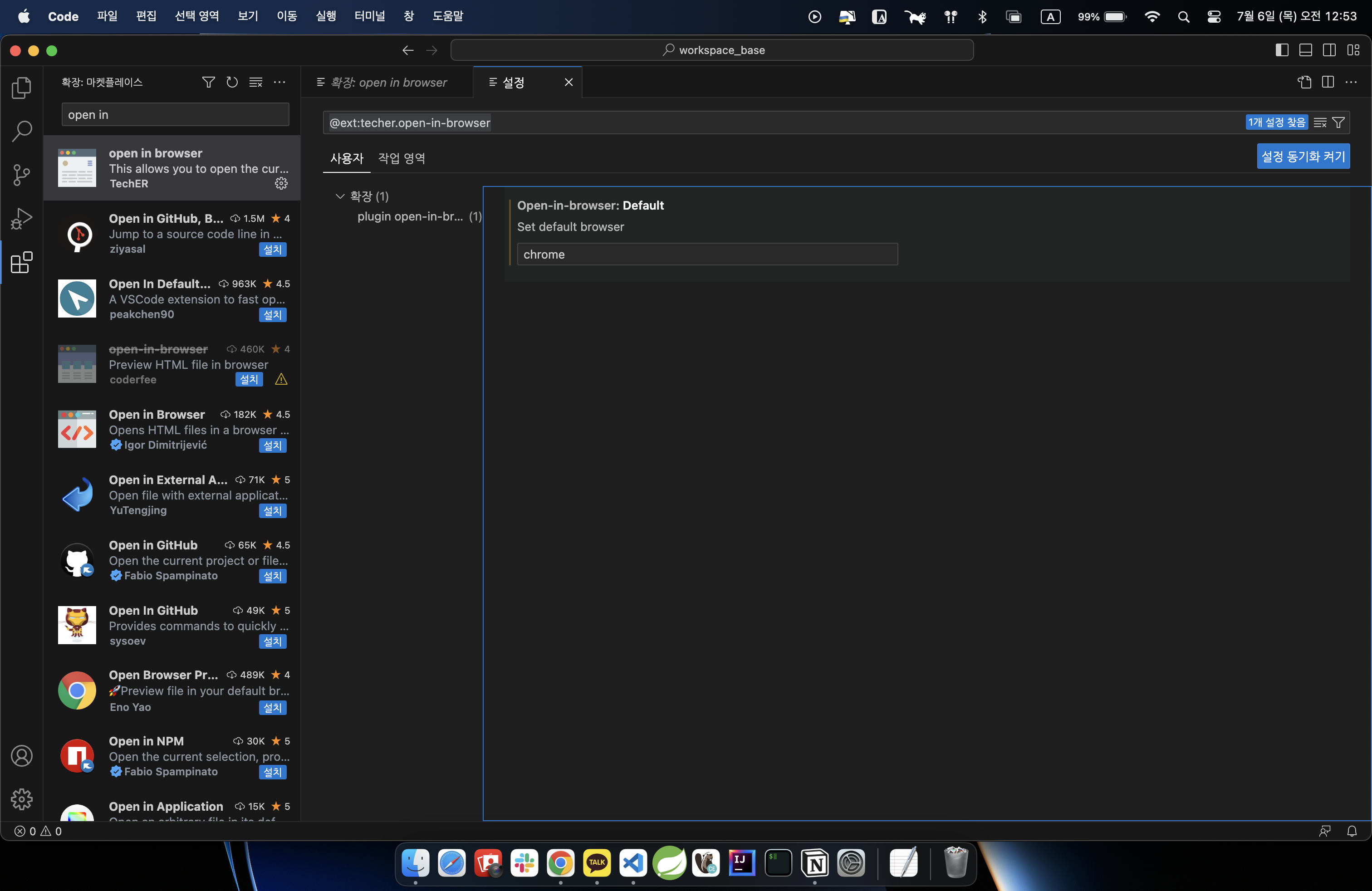 원하는 브라우저를 적어주면 기본 브라우저를 변경할 수 있다.