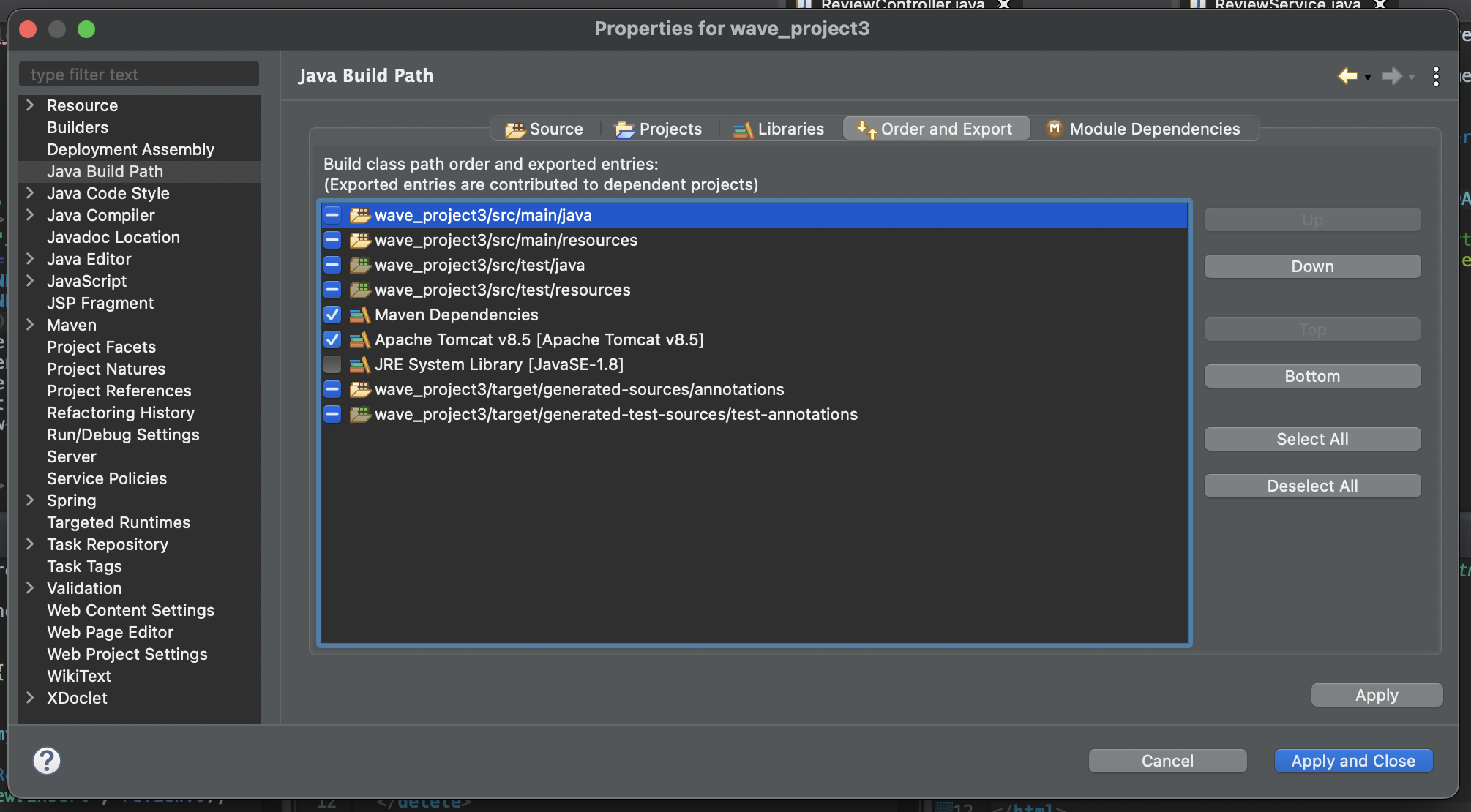 Deployment Assembly → Add → Java Build Path Entries → Maven Dependencies → Finish