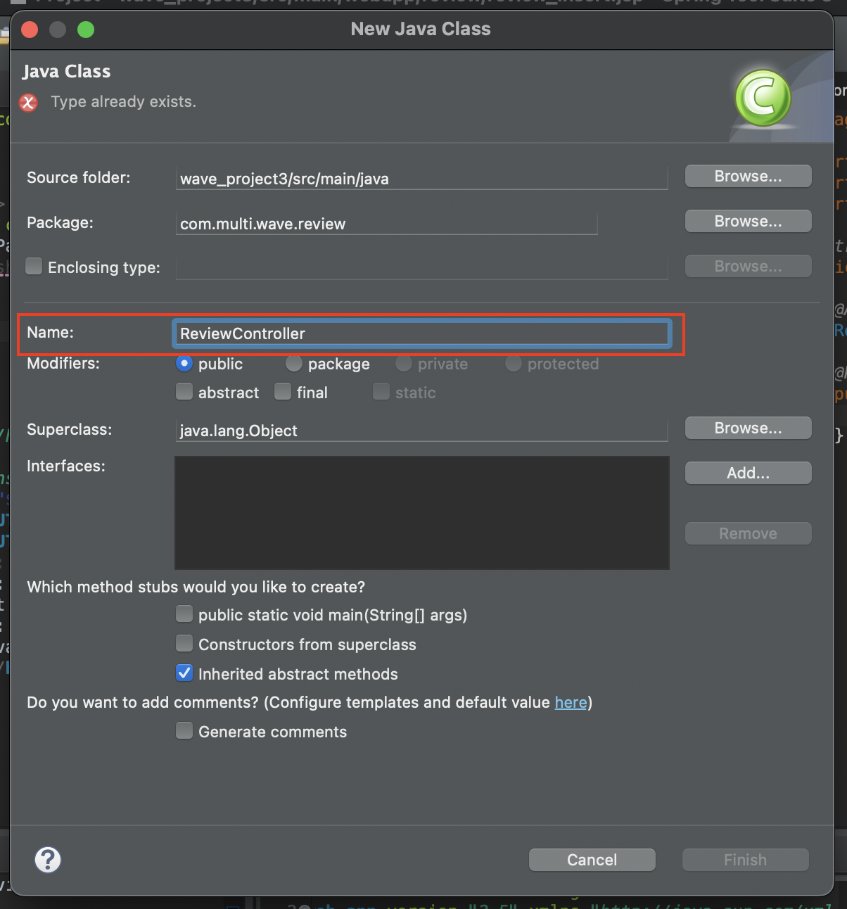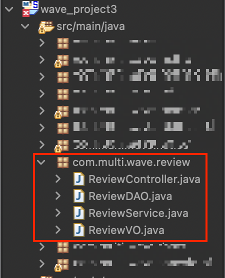 그럼 프로젝트 → src/main/java → com.multi.wave.review