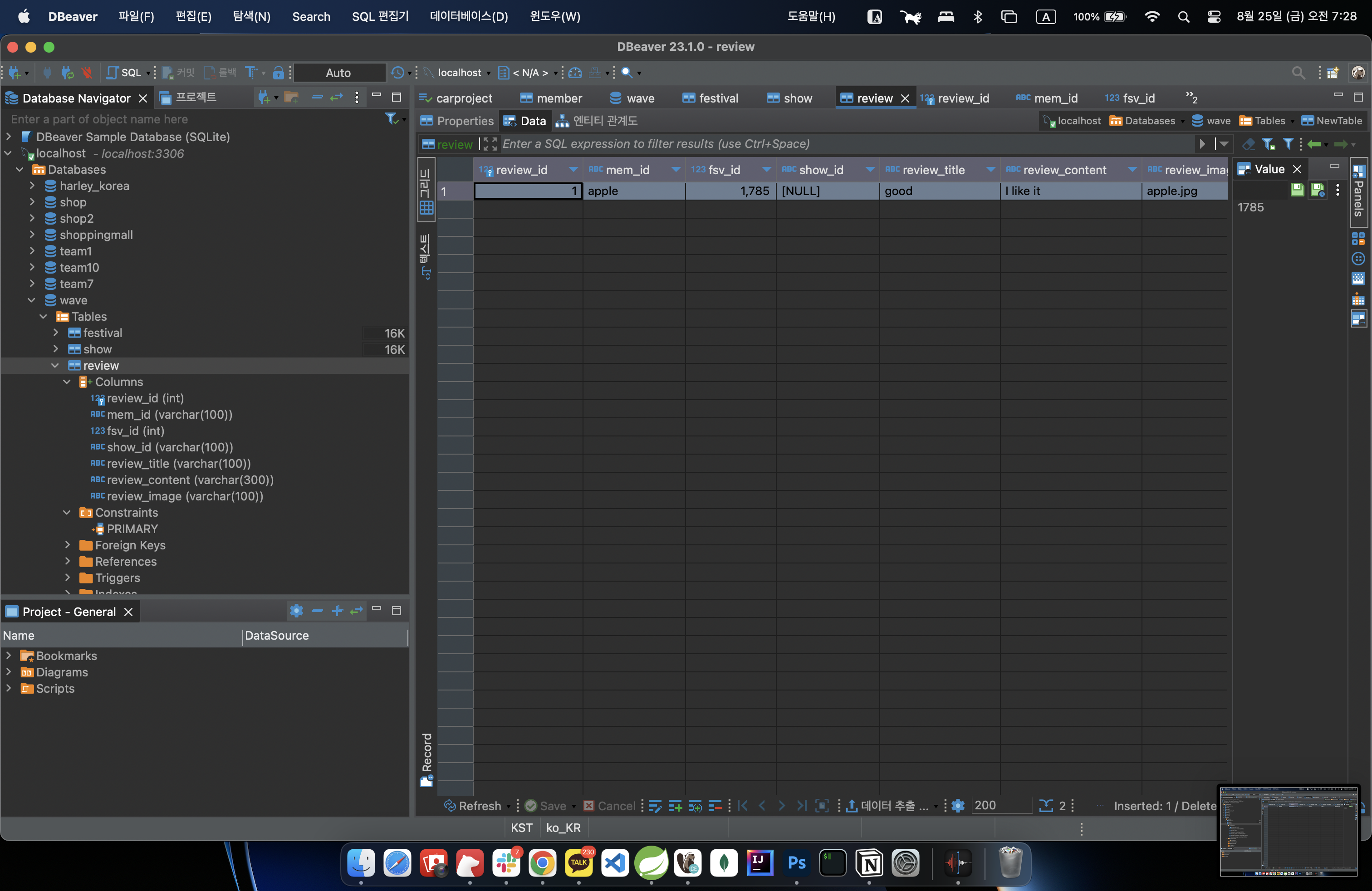 DBeaver에 와서 새로운 review 테이블을 만들고