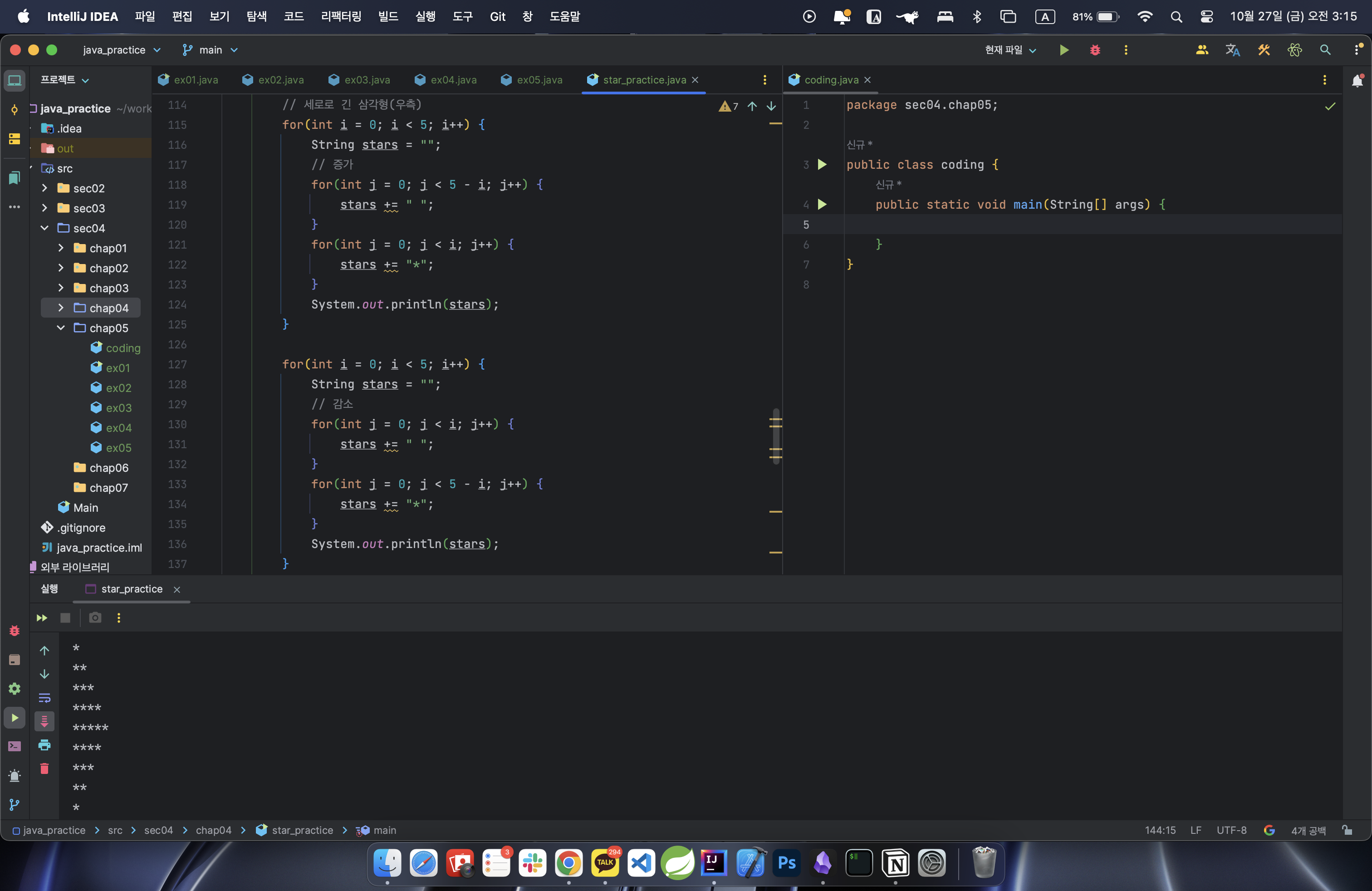 오랜만에 기초 복습하면서 별 찍기 연습 하는 김에 TIL 올린다.