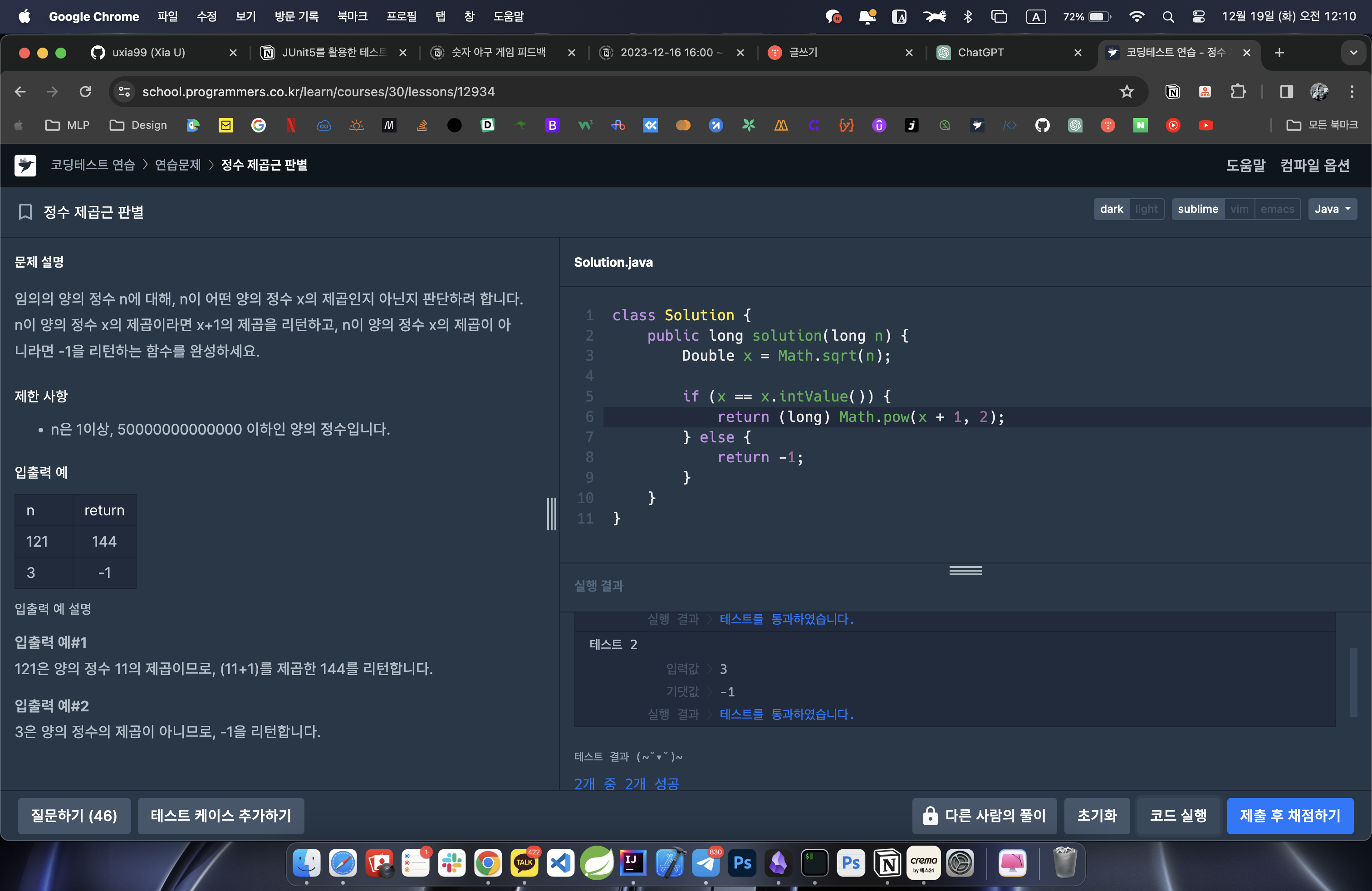 프로그래머스 Lv.1 '정수 제곱근 판별' 자바