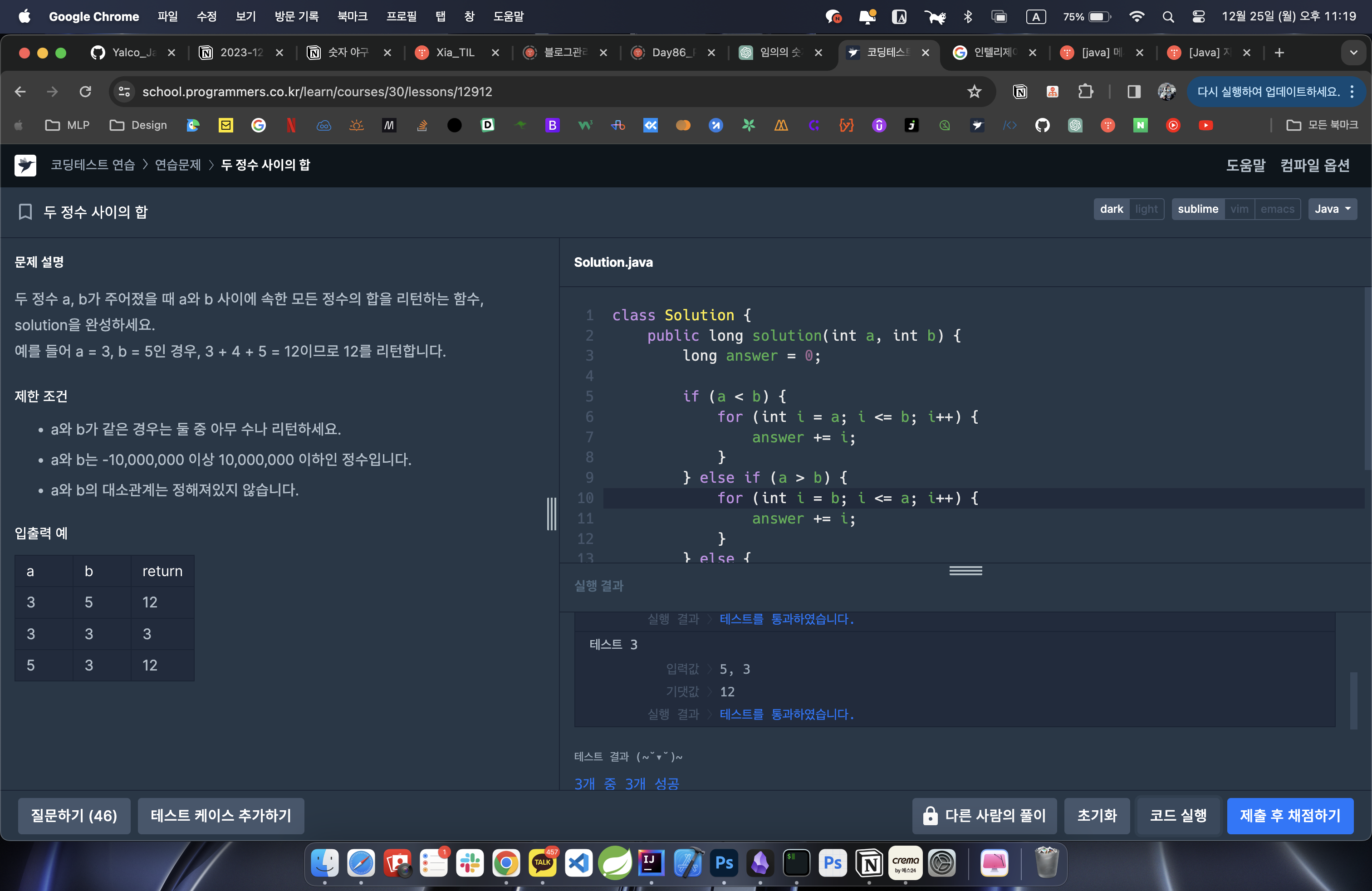 프로그래머스 Lv.1 '두 정수 사이의 합' 자바