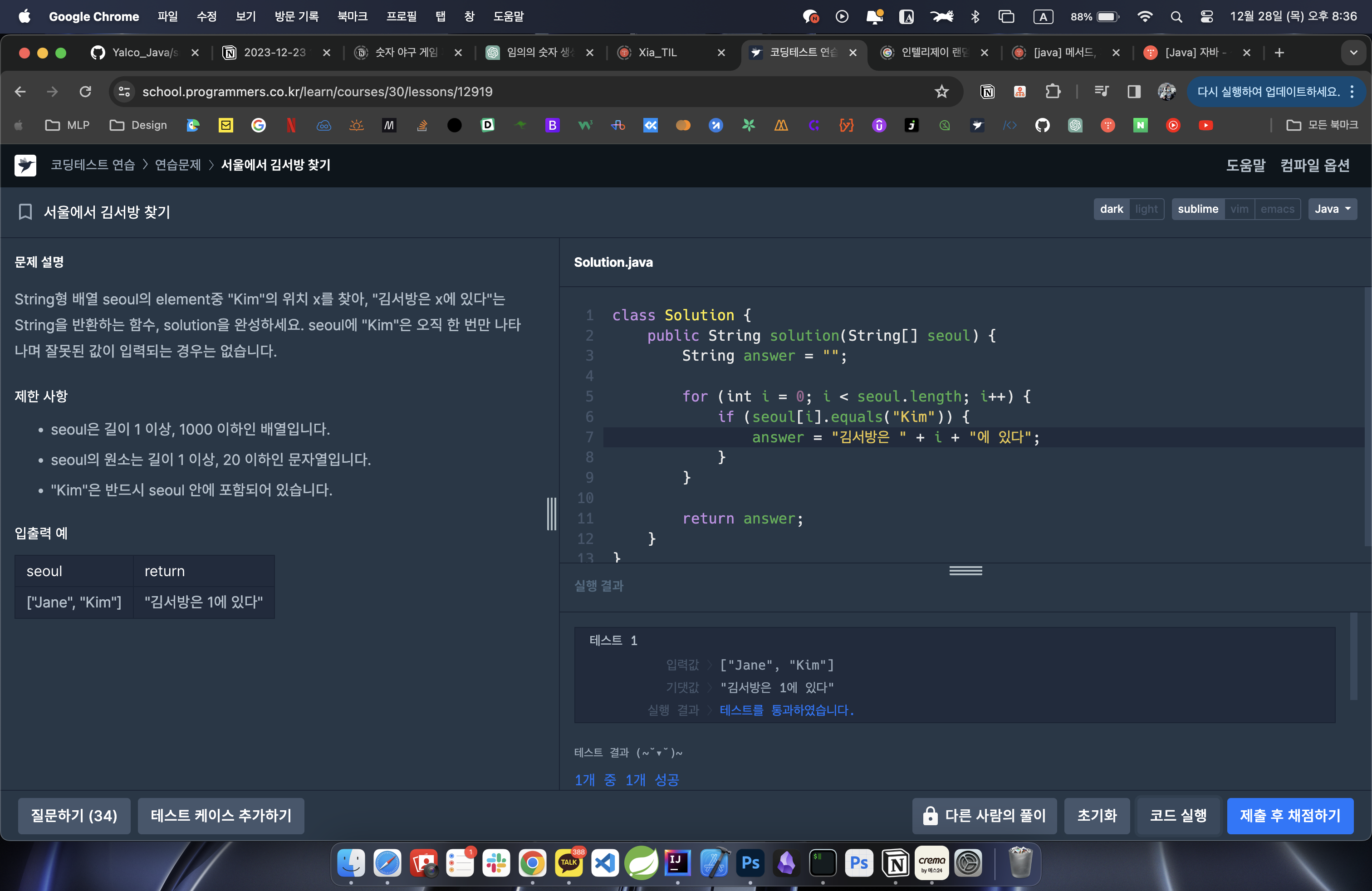 프로그래머스 Lv.1 '서울에서 김서방 찾기' 자바