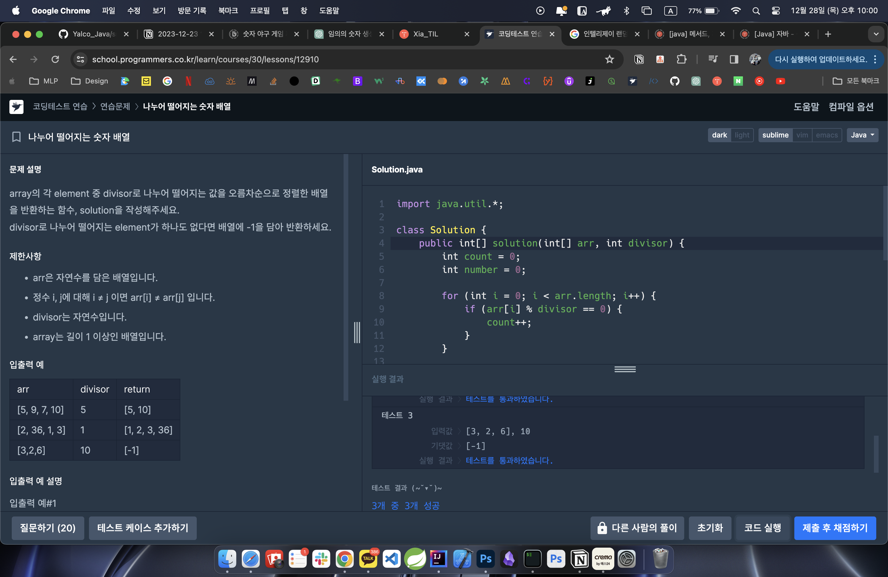 나누어 떨어지면 Arrays.sort 메서드를 이용해 오름차순으로 정렬하도록 했다.
